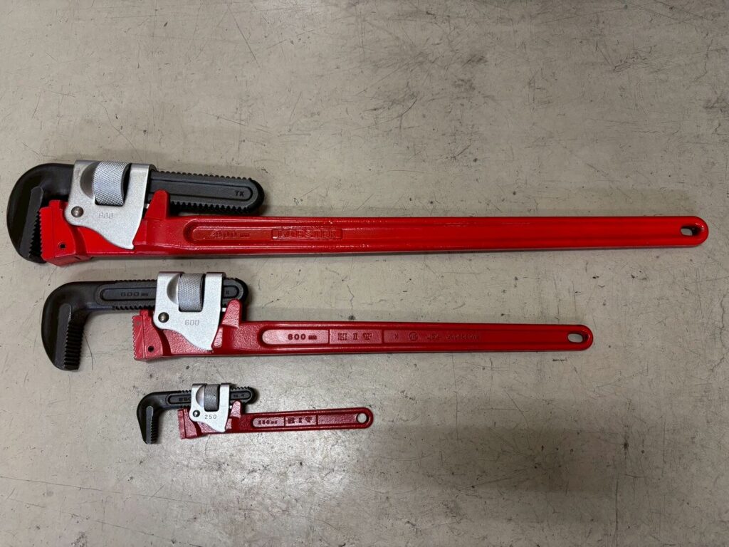 私たちプロの設備屋の工具箱には、必ず複数のサイズ、複数の種類のパイプレンチが入っています。